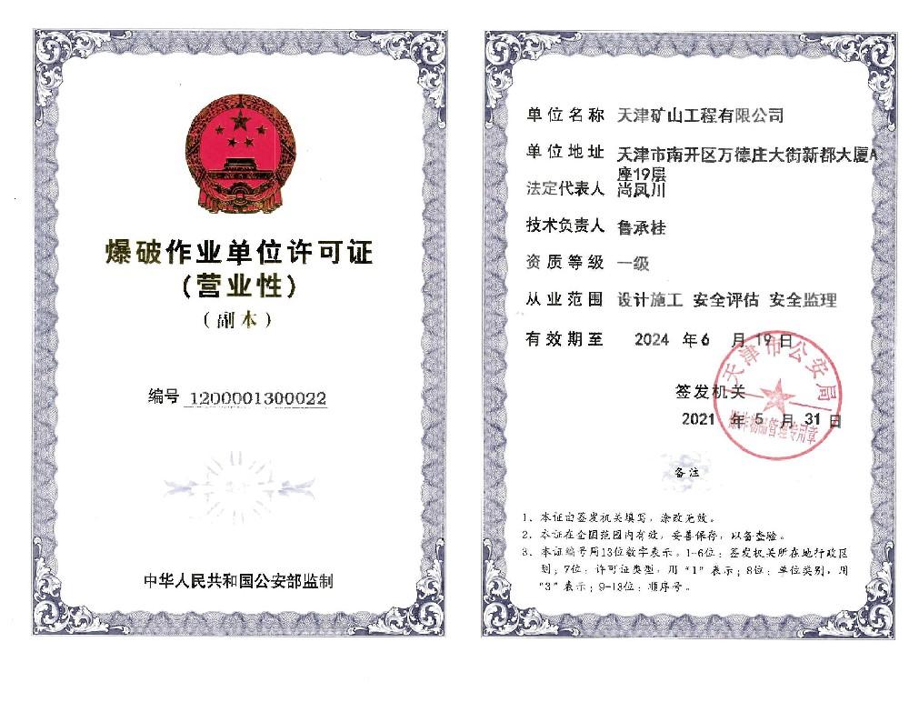 爆破作業單位許可證(營業性)